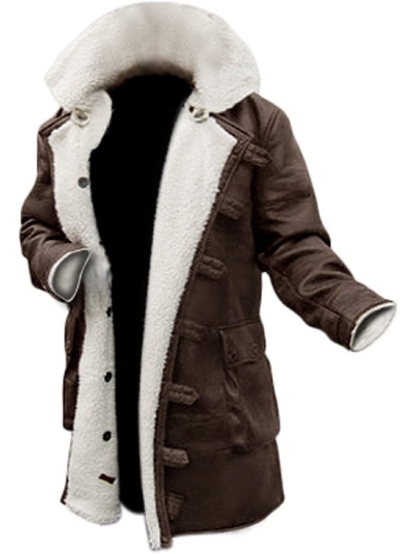 Tom Hardy Batman The Dark Knight Rises Bane Leather Shearling Jacket Coat